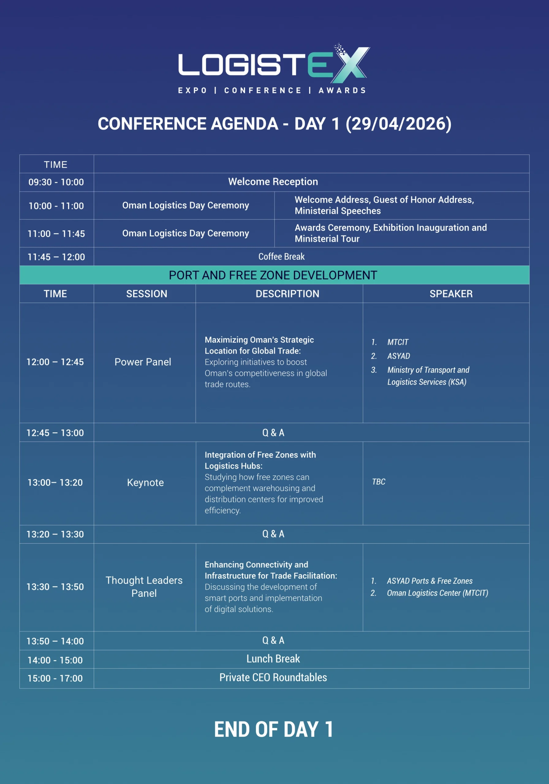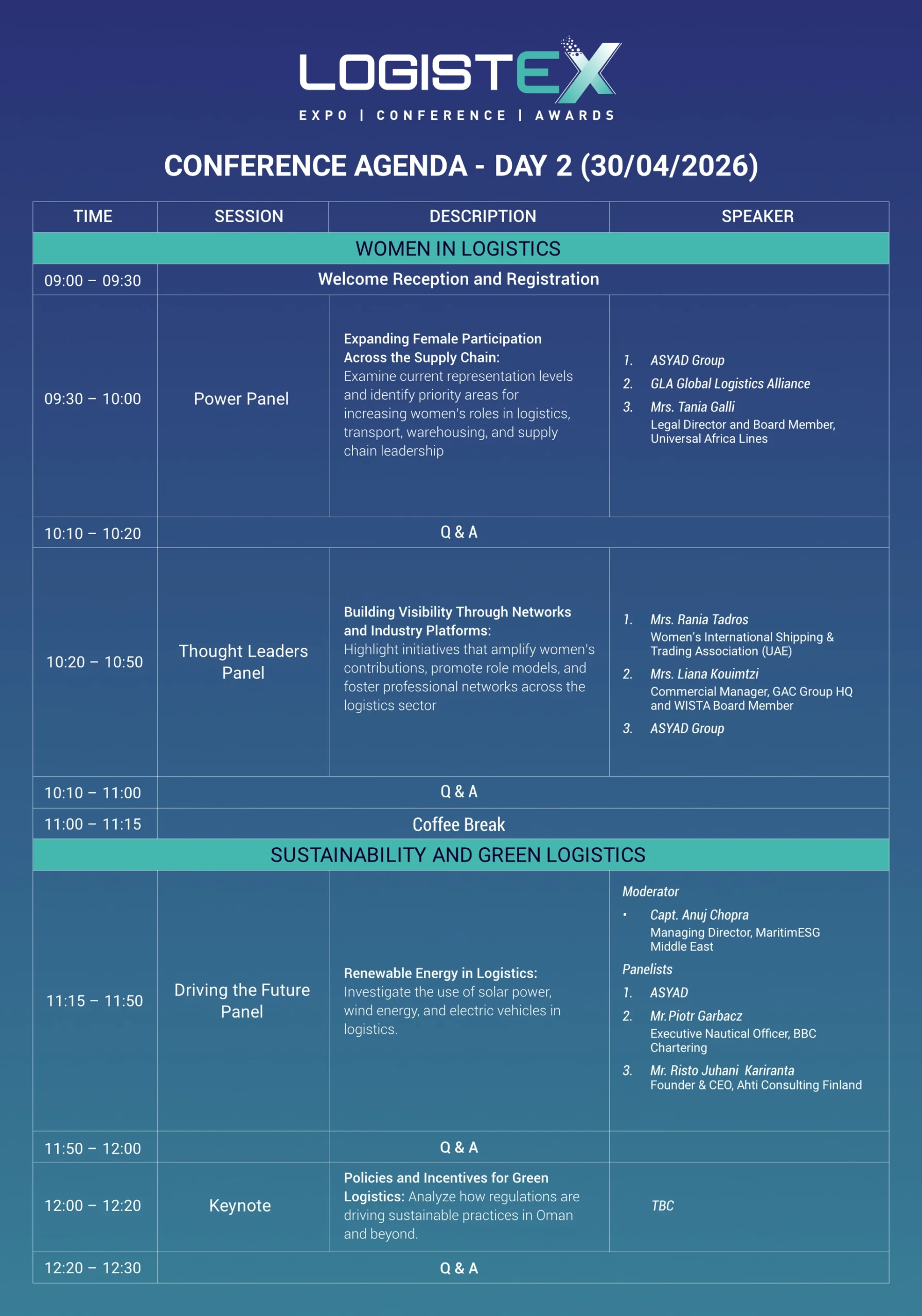 Keynote speakers at LOGISTEX 2026 include global logistics experts, policymakers, CEOs, and innovators who are redefining supply chains, smart mobility, and trade connectivity. They bring real-world insights, strategic perspectives, and forward-looking ideas that inspire transformation across Oman and the wider region.